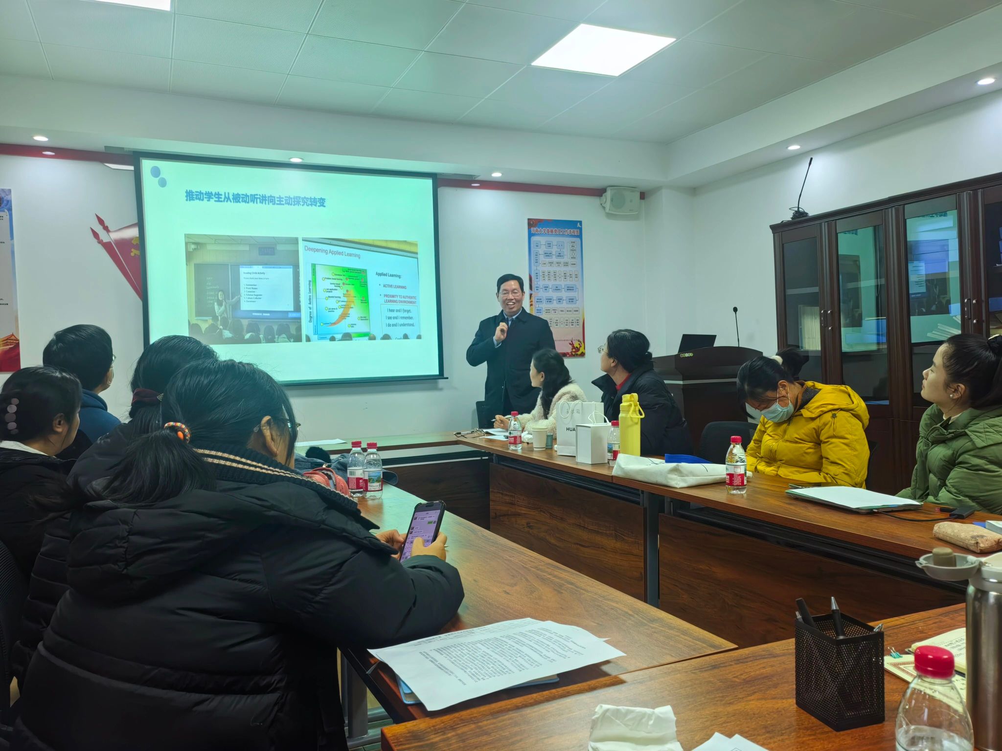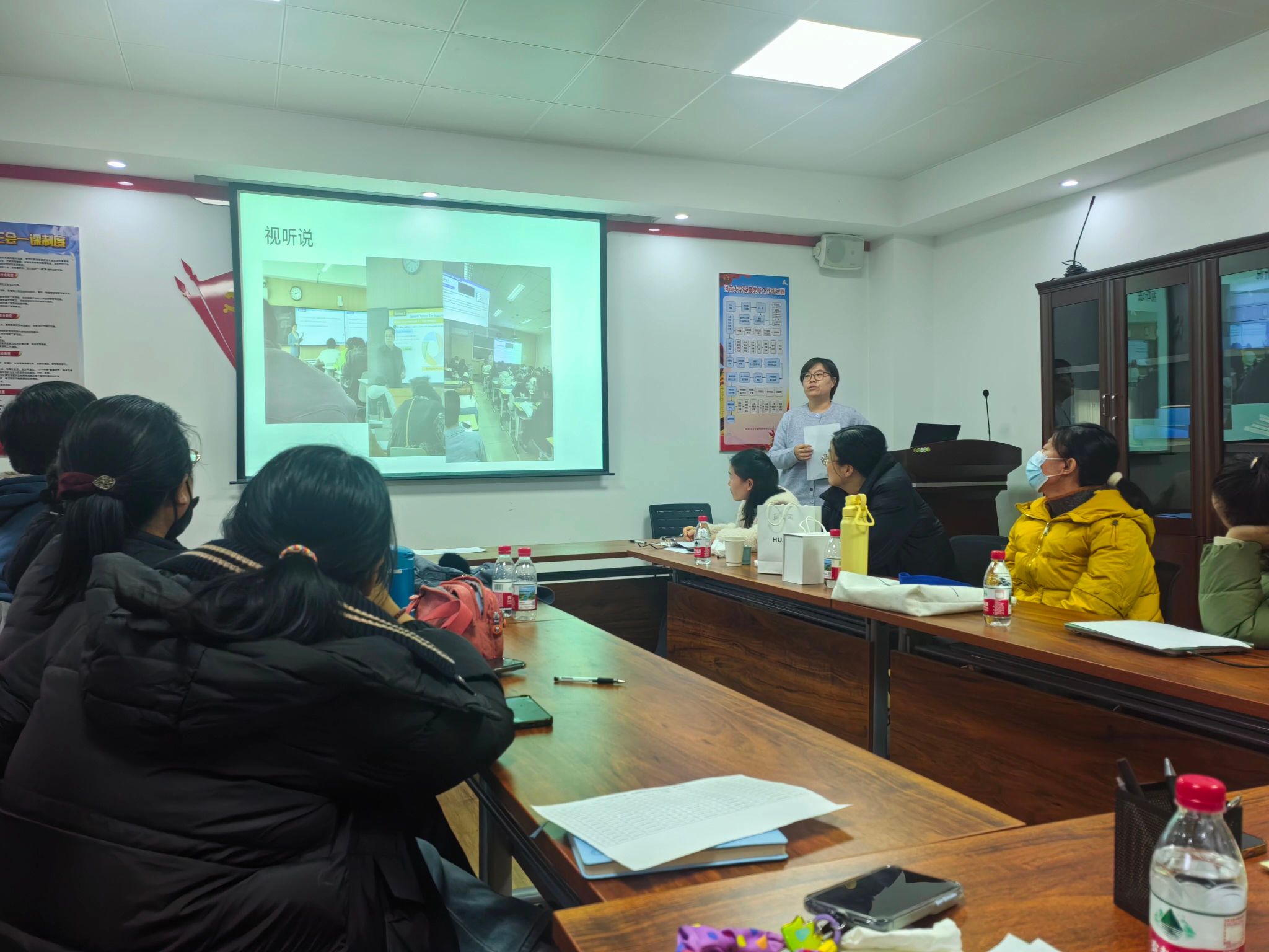 2025年12月18日,本学年21点基本策略 教师互听课任务圆满完成,视听说第二教研室借此机会开展了一场教研活动。本次活动以“优秀案例分享与教学研讨”为主题,由教研室主任石慧主持,并特邀杨剑波、石慧、安琪三位老师分享他们在听课过程中的收获与感想。