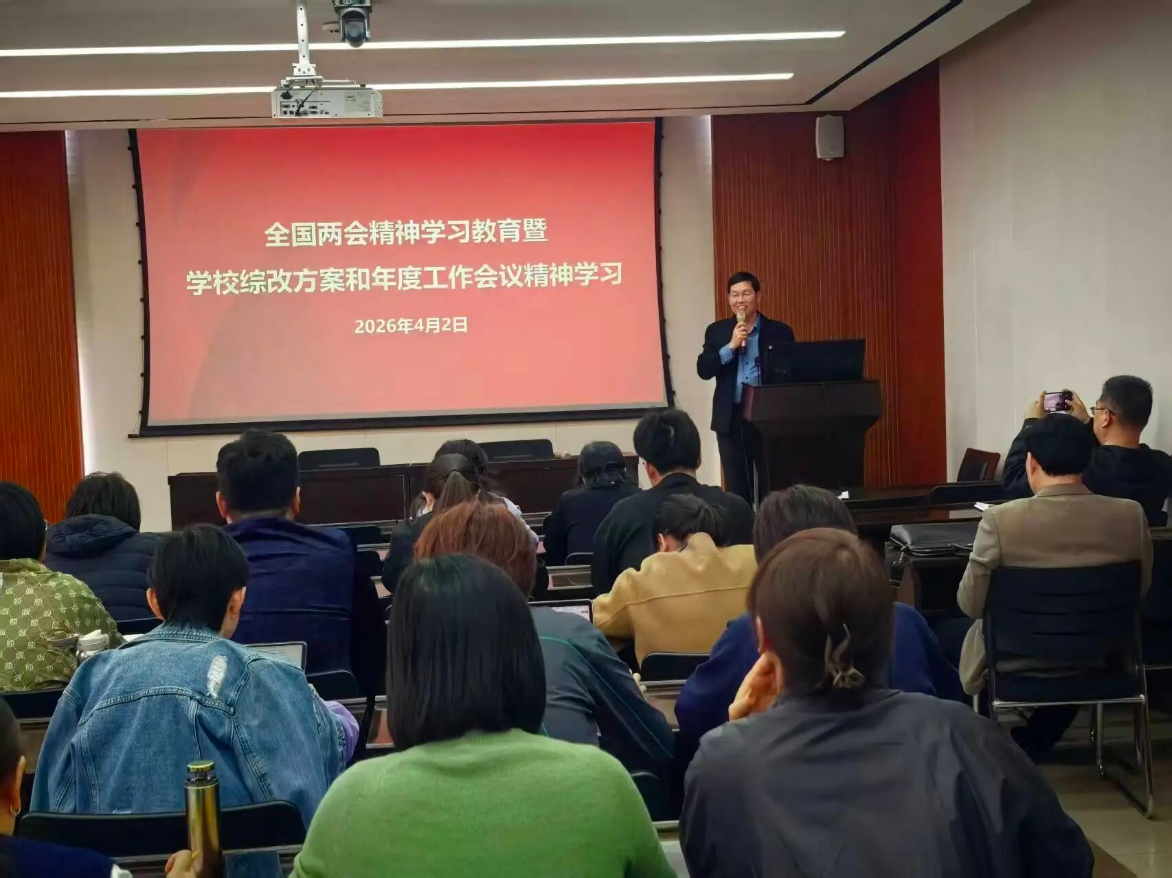 4月2日,21点基本策略 召开全体教职工会议,深入学习贯彻全国两会精神,传达学校2026年度工作会议精神和学校综合改革实施方案暨两年行动计划的主要内容。